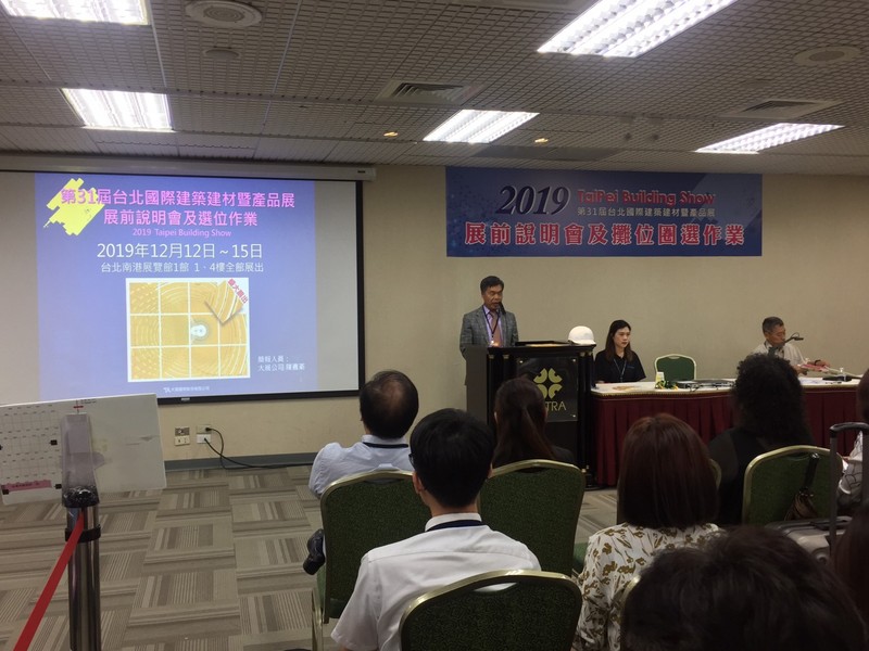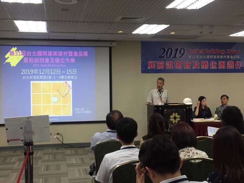本會與大展國際股份有限公司共同舉辦2019第31屆「台北國際建築建材暨產品展」,於8月20日、21日、22日三天分別召開展前說明會,會中除宣導展期前後應注意事項,也將依產品屬性分區進行公平、公正、公開的選位作業。 展覽依照往例配合舉辦的「建築師節慶祝大會」與「台灣建築論壇」均將邀請國內外產、官、學、各界權威一同聆聽、分享。今年論壇以「建築PLUS+」為主題,透過全新視野綜觀建築物的古今將來,將哲學、幸福、健康、美學等,層層疊加至建築物上,在互動的過程中,帶給觀眾前所未聞的創新觀點。 2019年台北國際建材展將於12月12日至15日在南港展覽館全館1、4樓展出,除國內優秀廠商共襄盛舉外,國產陶瓷與照明公會,以及中國、美國、日本、蒙古…等多個國家地區,皆將以專館形式,於展中呈現特色建築工法及技術,並透過本展會進行國際建築建材新知交流。此一年度展覽盛會,勢必吸引眾多專業買主接踵而至,為展會帶來龐大商機。 詳情可上大會網站 http://www.taipeibex.com.tw/ 查詢,或電洽大展公司02-27588173。