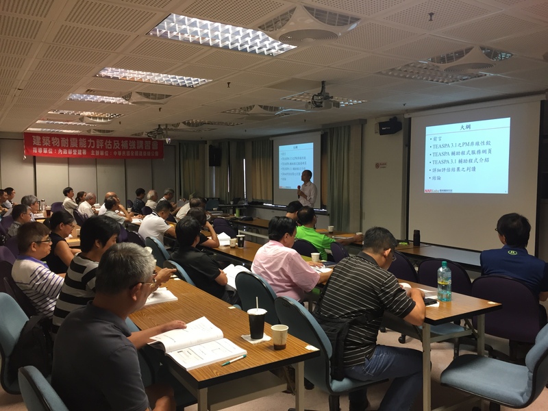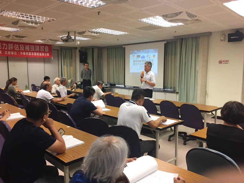 本會今日(8/31)於高雄市建築師公會辦理「建築物耐震能力評估及補強講習會」,本講習會主要喚醒開業建築師對建築物結構的重視,也要開業建築師積極的在此領域中佔有一席之地。由陳介程建築師、鍾立來副主任、陳澤修主任委員及劉明滄主任委員授課,講授有關PSERCB、SERCB、住宅性能評估及TEASPA之介紹及判讀,補強工法之介紹及相關法令說明,讓更多開業建築師取得結訓證明文件,爭取更多建築師之設計業務。