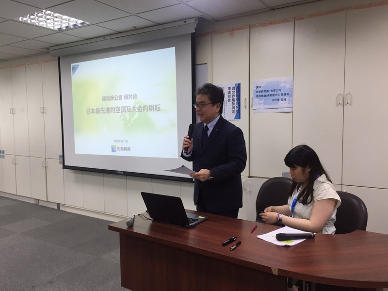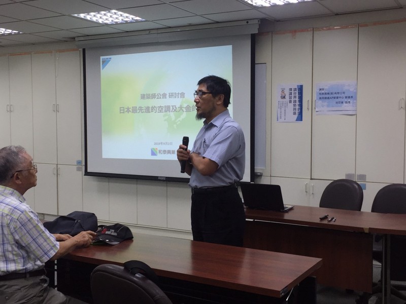 為鼓勵開業建築師及建築師事務所從業人員瞭解各類建築物的空調國際趨勢,以提升建築物與空調設備相互配合達到美學和科技的融合,本會與「大金空調總代理/和泰興業(股)公司」於今日(9/2)下午2時,假臺北市建築師公會第一會議室共同舉辦「各類建築物的空調世界趨勢與選擇講習會」,和泰興業(股)公司由田中敏之副總、鵜木厚副總、池田進營運長、淺井克裕營運長、黃庭裕處長、徐榮隆部長、Sanky Sue /Senior Consultant、Alan A Young /Consultant、Alan A Young /Consultant、Alex Liew /Sales Engineer蒞臨參與。