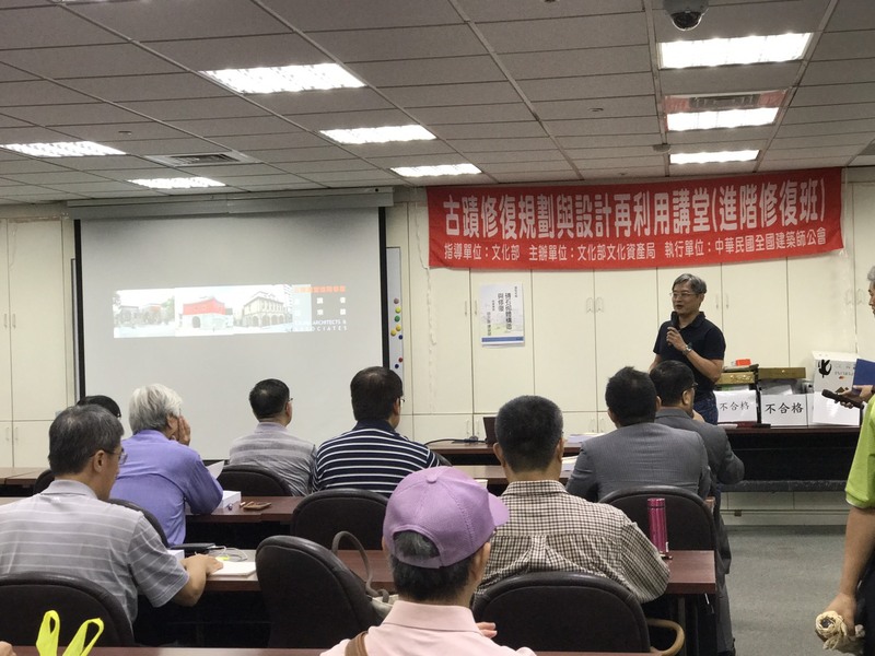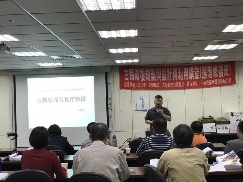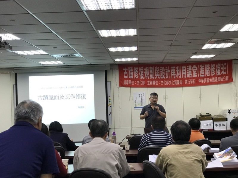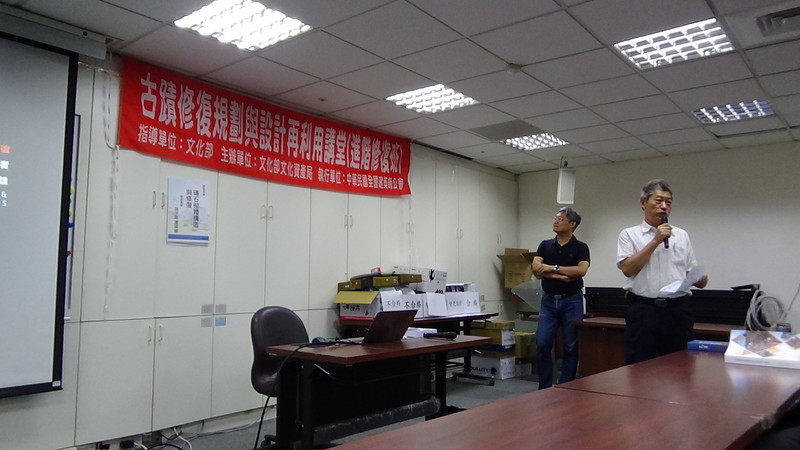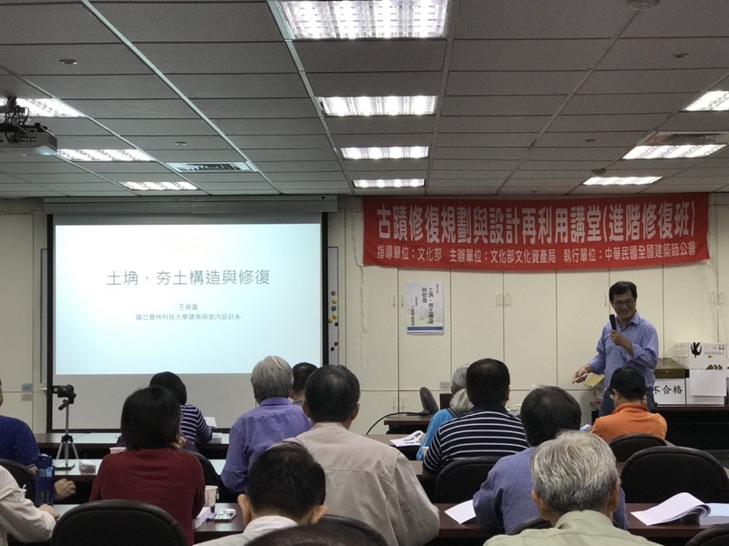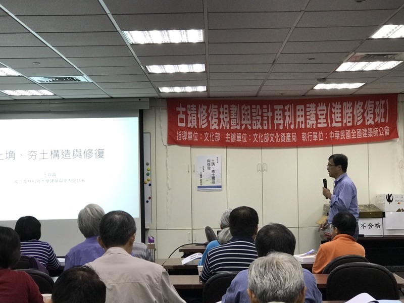 今日(9/20)起本會連兩日舉辦臺北場「古蹟修復規劃與設計再利用講堂-修復進階班(C)」,安排文化資產保存修復管理維護之專家學者進行指導講授研習。主要授課內容大綱如下::磚石砌體構造與修復、土埆夯土構造與修復、古蹟灰作及灰泥壁體修復、古蹟屋面及瓦作修復、鋼結構混凝土構造與修復、古蹟緊急加固與結構補強工法以及古蹟修復與管理實務(實地參訪)。