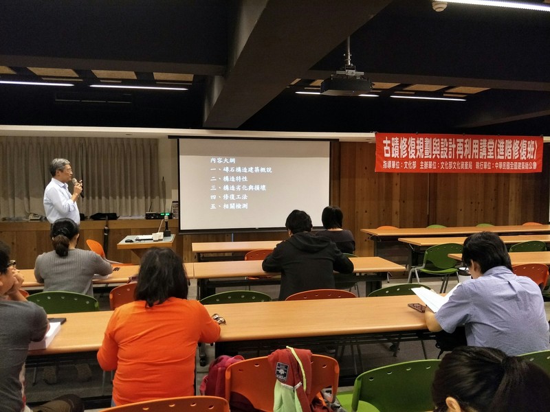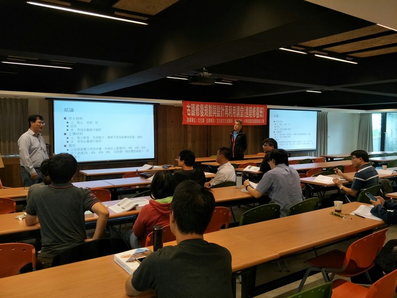 今日(9/27)起本會連兩日舉辦宜蘭場「古蹟修復規劃與設計再利用講堂-修復進階班(C)」,安排文化資產保存修復管理維護之專家學者進行指導講授研習。主要授課內容大綱如下::磚石砌體構造與修復、土埆夯土構造與修復、古蹟灰作及灰泥壁體修復、古蹟屋面及瓦作修復、鋼結構混凝土構造與修復、古蹟緊急加固與結構補強工法以及古蹟修復與管理實務(實地參訪)。