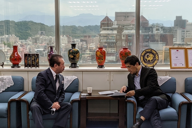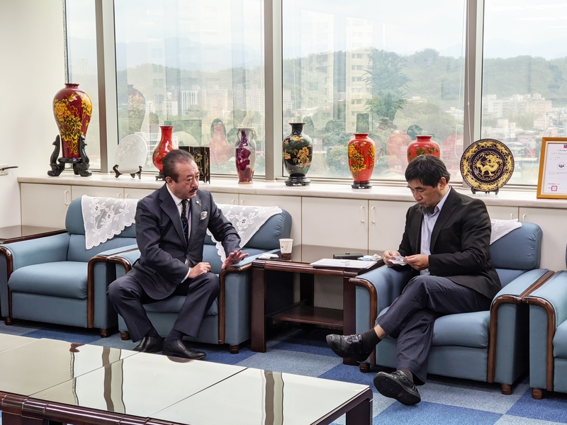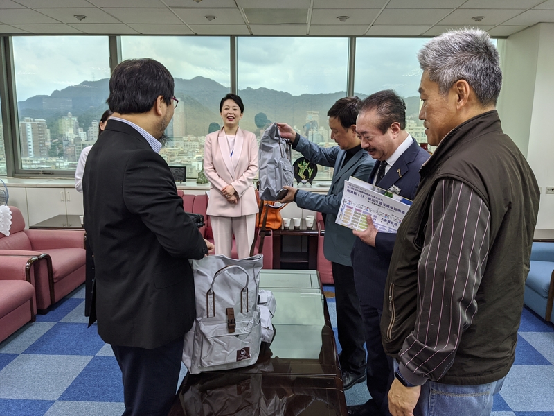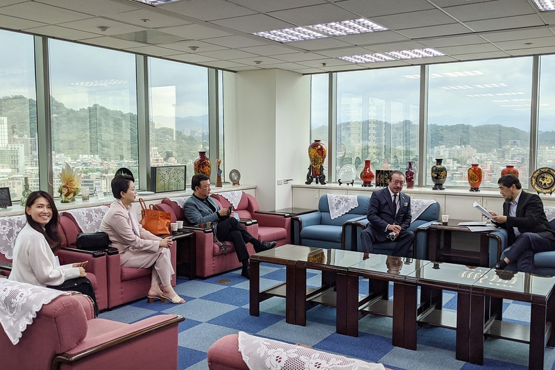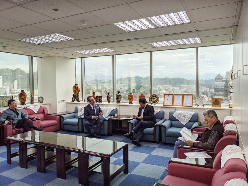 本日(4/28)日本輸出入業協會福田桂良理事長、日商港製器股份有限公司港製器工業株式會社台灣事務所傅芳芳副董事長及余天立法委員辦公室余帝執行長為推廣鋼構連結調節器ATOMU 801乙事拜訪本會。