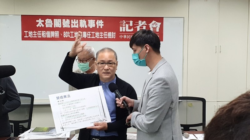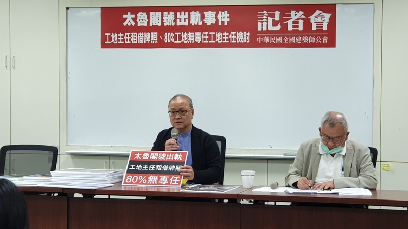 八成工地無專任工地主任 ,工安堪慮! 工地主任應比照建築師懲戒借牌! 針對台鐵太魯閣號慘劇,全國建築師公會理事長劉國隆表示,長期以來,公共工程的施工防護計劃及施工交通計劃不完備,再加上法規對營造廠工地專業人員要求過於鬆散,估計全台工地約有80%沒有專任工地主任在現場管理,以致施工現場管理鬆散、工安堪慮,釀成慘劇。此外,目前法規僅規範建築師不得借牌,而工地主任並無相關規定,恐成工安漏洞,劉國隆呼籲政府應正視並立即修法改善營造業法對工地管理過於寬鬆的問題,以及比照建築師法第26條,規範工地主任懲戒借牌,才是降低工程事故的根本之道。