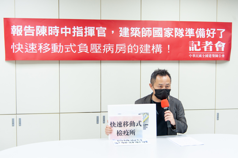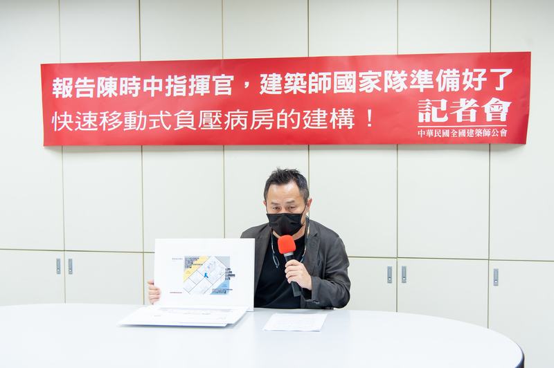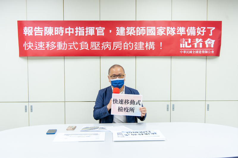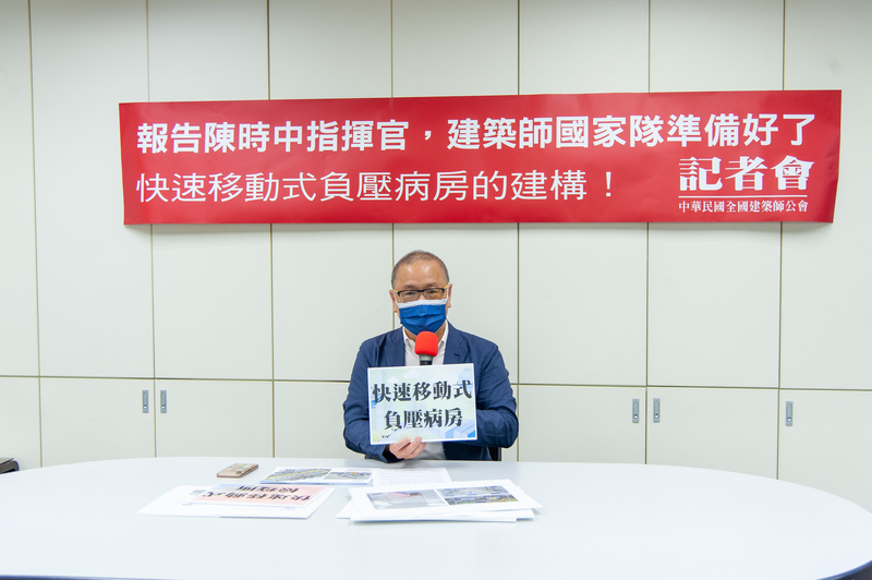 面對國內連三日暴增確診武漢肺炎本土病例,建築師國家隊準備好了!全國建築師公會呼籲政府應立即建構台灣防疫方舟,建築師們願意協助打造快速移動式負壓病房,攜手共度難關。 全國建築師公會18日召開「報告陳時中指揮官,建築師國家隊準備好了!快速移動式負壓病房建構」記者會。公會理事長劉國隆建築師表示,國內武漢肺炎疫情面臨嚴峻挑戰,昨日本土病例已激增至333例,公會除了全力配合中央流行疫情指揮中心的防疫工作,在行有餘力下,願意在專業技術和提供醫護安全環境方面協助政府,攜手共度難關!報告蔡英文總統!報告賴清德副總統!報告中央流行疫情指揮中心指揮官陳時中部長!建築師國家隊準備好了!