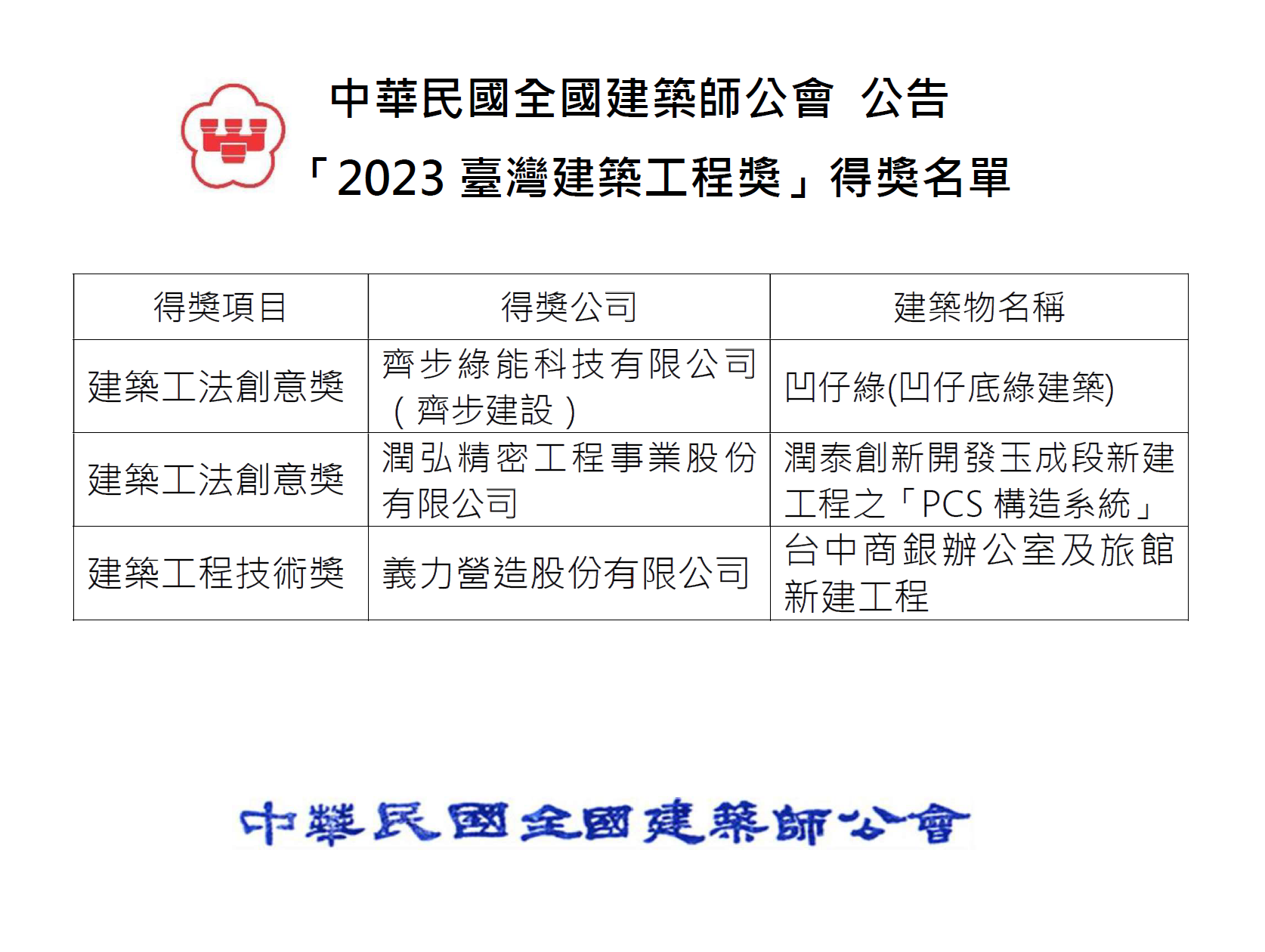 第20th臺灣論壇場次表5.33 MB2023臺灣建築工程獎-得獎公告99.8 KB